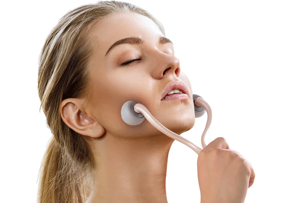 - Vùng cằm: Lăn từ dưới cằm hướng lên viền hàm, mỗi bên 10–15 lần