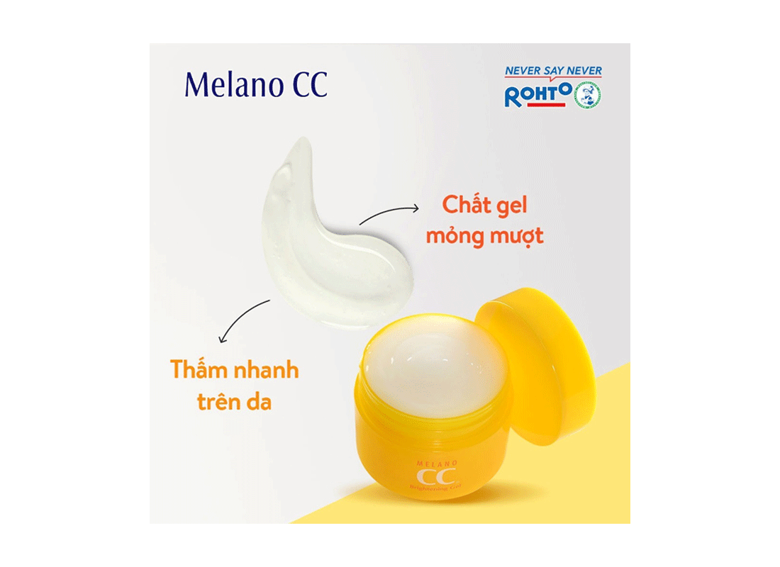 - Sau khi rửa mặt sạch và dùng toner, lấy một lượng gel dưỡng trắng mờ thâm nám Melano CC 100g vừa đủ.