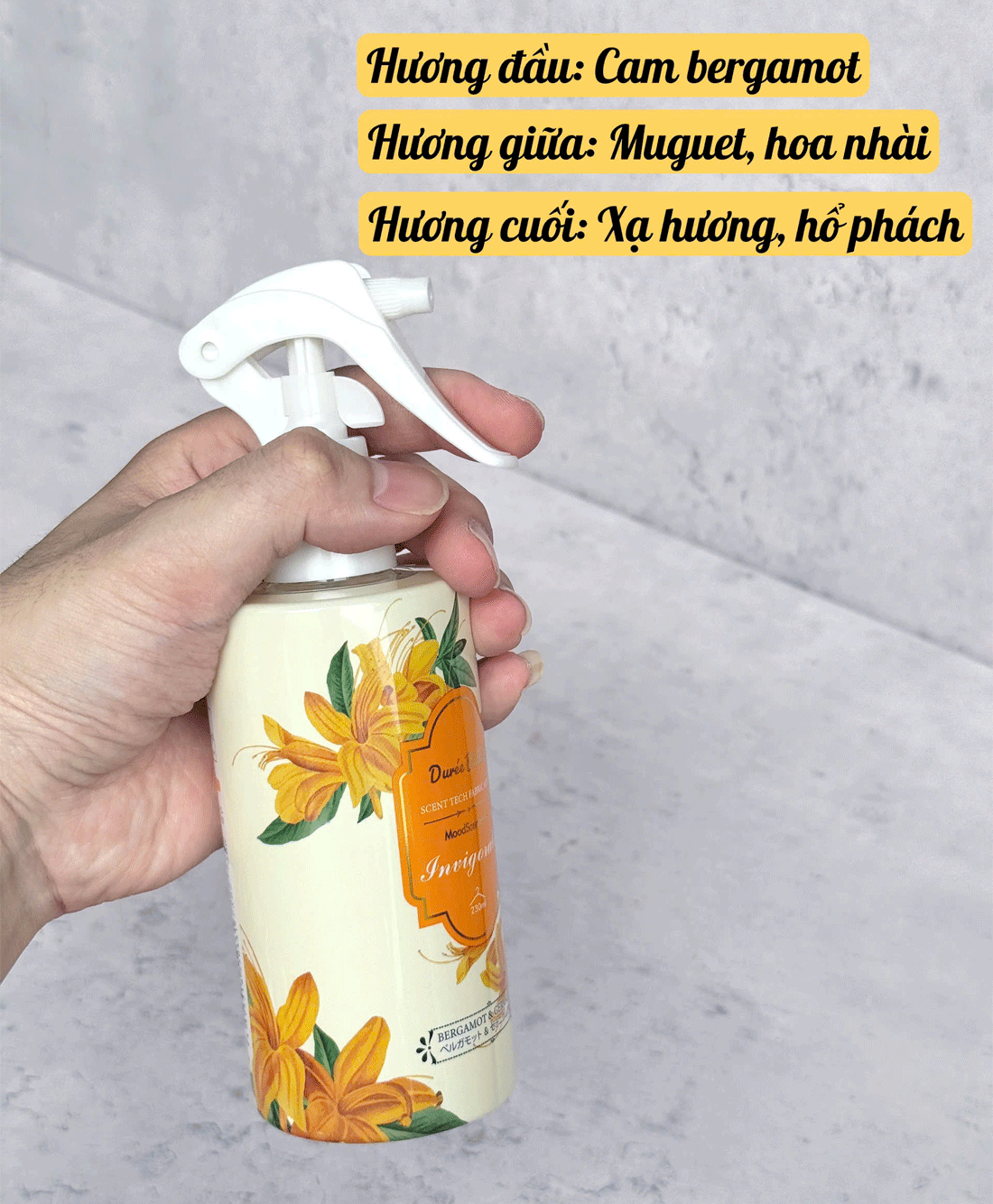 - Xịt cách quần áo khoảng 20–30cm để hương lan tỏa đồng đều.