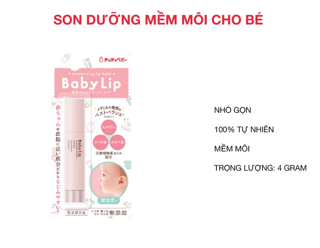 Son dưỡng môi trẻ em Chuchu Baby Lip Nhật Bản phù hợp với: