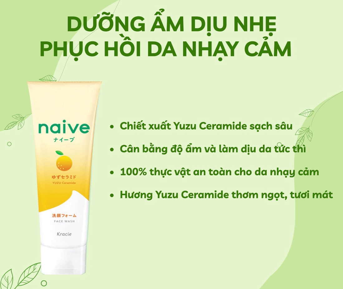 Ceramide là thành phần quan trọng giúp củng cố hàng rào bảo vệ da. Sự kết hợp ceramide trong Sữa Rửa Mặt Sạch Sâu Kracie Naive Face Wash Yuzu Ceramide 130g giúp duy trì độ ẩm, hạn chế tình trạng khô da, bong tróc, đặc biệt phù hợp với làn da dễ nhạy cảm hoặc da thường xuyên tiếp xúc với môi trường điều hòa.