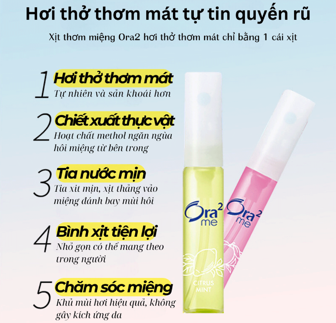 Để sử dụng xịt thơm miệng Sunstar Ora2 đúng cách, bạn có thể: